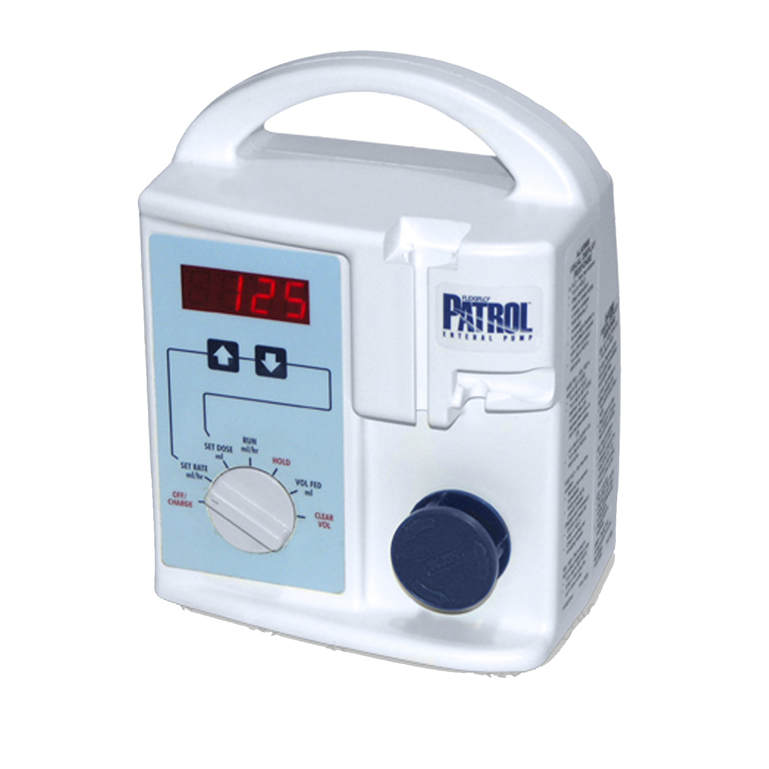 The Ross Flexiflo Patrol incorporates the use of a specially-designed administration set which automatically clamps off the flow of fluid when removed from the pump, preventing free-flow. Features include a dose limit, accumulated volume counter, programmable hold time, lock-out, and memory which retains the rate, dose, and accumulated volume. The Patrol is recommended for pediatric patients. Rotary peristaltic operation.